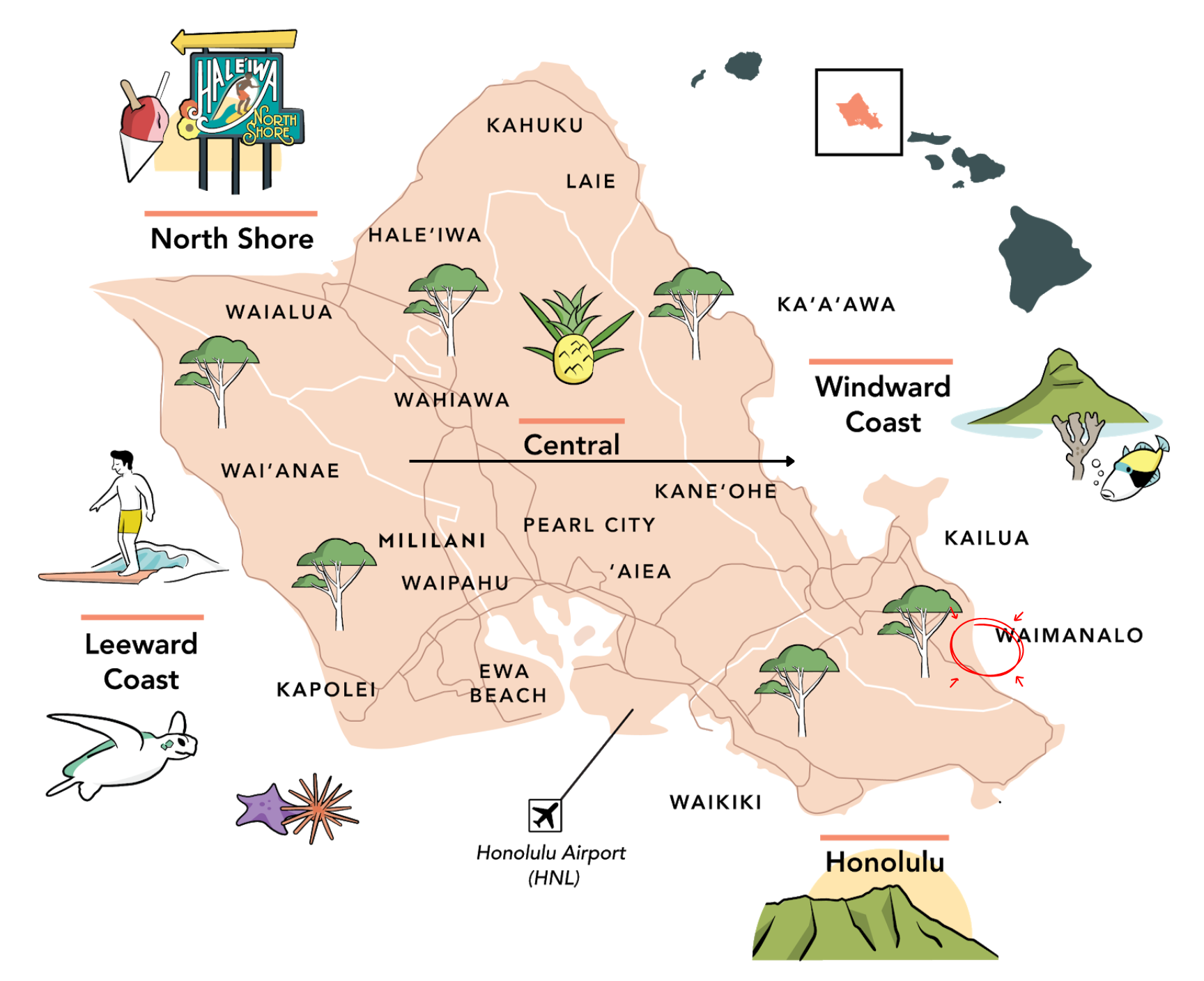 Waimanalo provides a diversity of mountains, ocean and greenery. The ocean is always nice and blue! This spot will take your breath away.